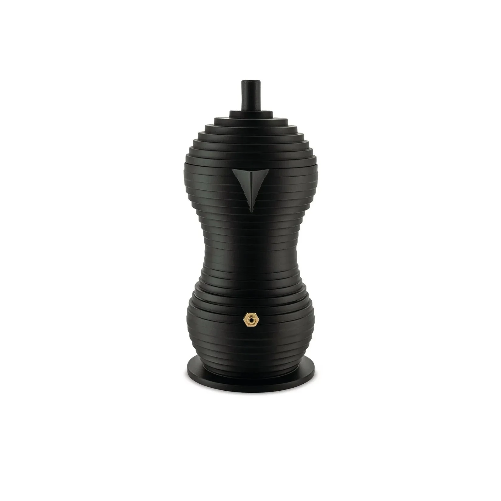 This iconic 3 cup Black Alessi espresso coffee maker is called Pulcina. Designed by Michele de Lucchi, this is is the product of intense research into the optimisation of the shape of the coffee pot in order to improve and enhance the end result of the drink. This Black version serves 3 average espresso's.