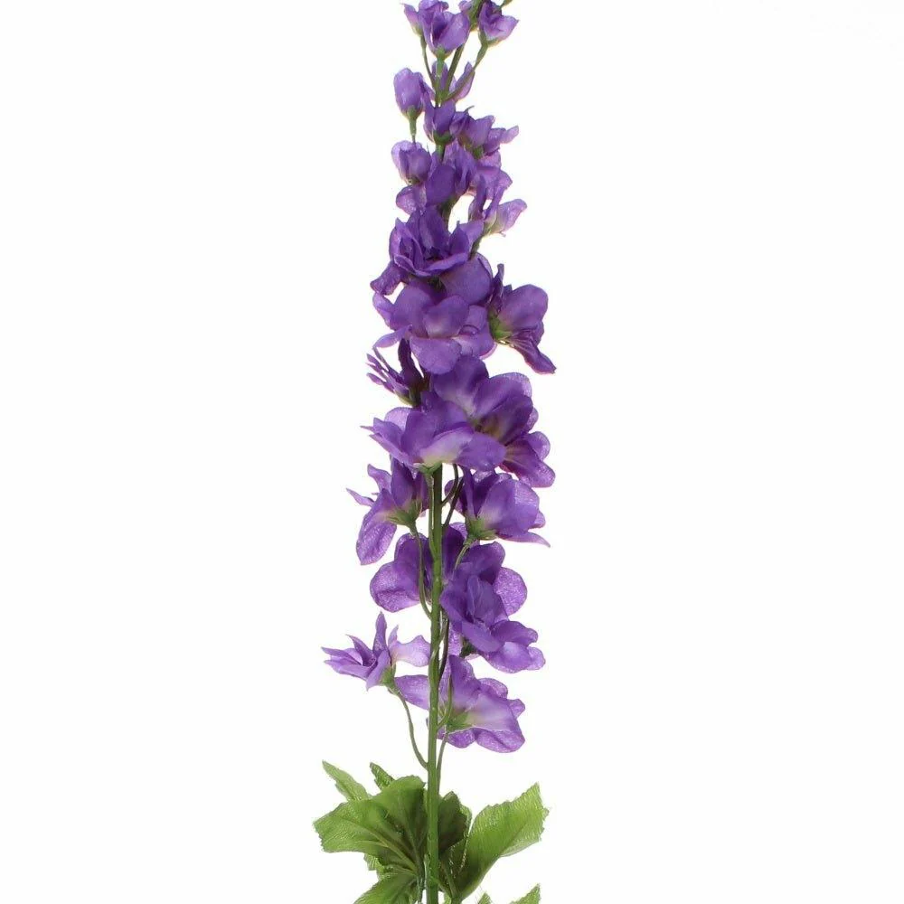 This artificial delphinium stem will add height and a pop of colour to your faux flower display and will instantly bring a cottage garden vibe to your arrangement. Featuring bright and vivid delicate flowerheads in shades of lavender this Delphinium stem is a great addition.