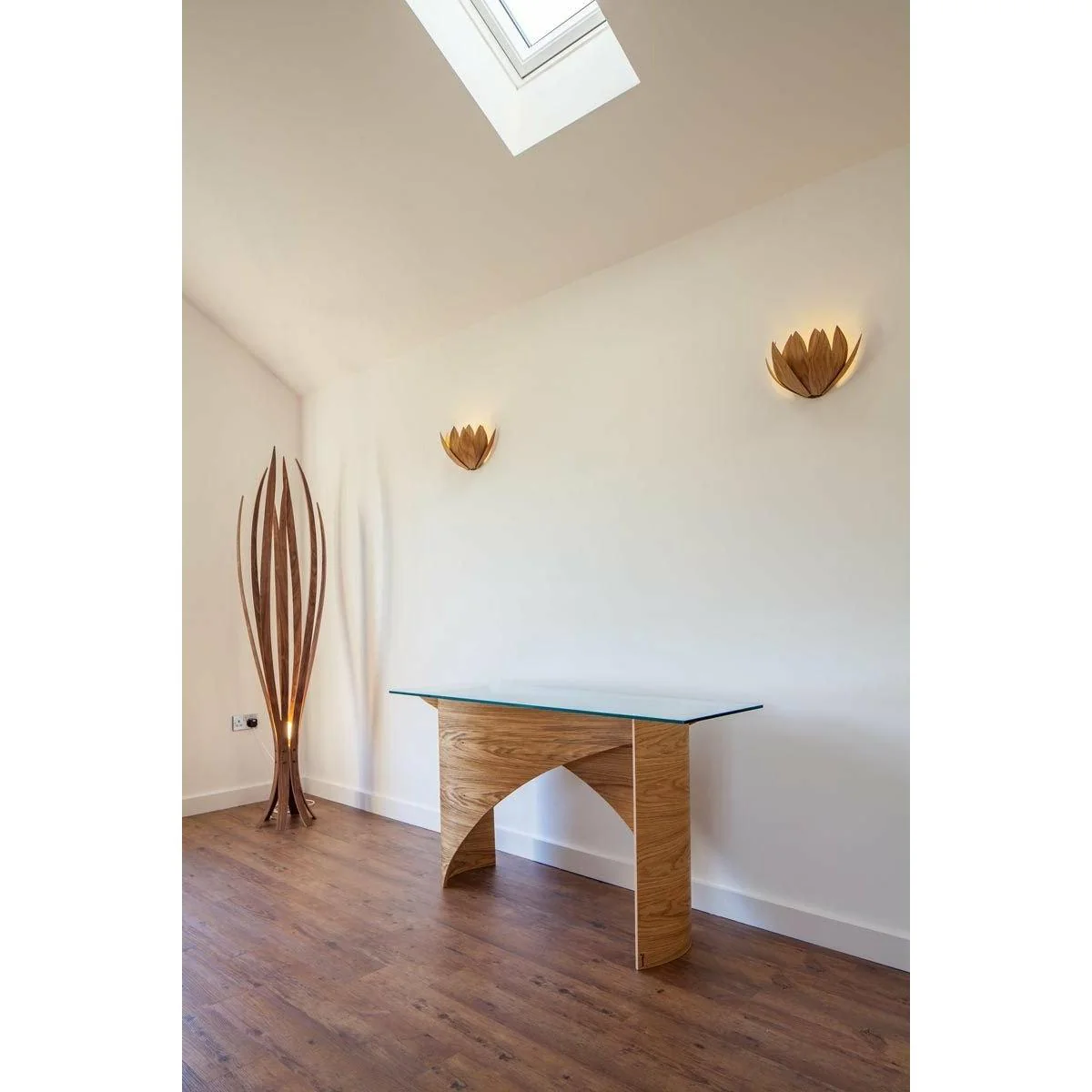 A unique Console table handmade my our friend Alex MacMaster, consisting of two elegantly flowing laminations of either Oak or Walnut.
