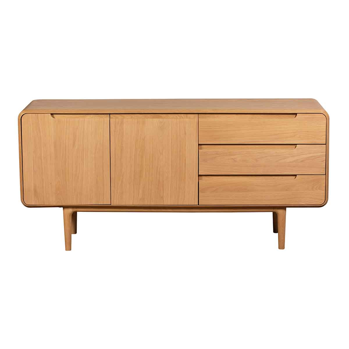 The soft curves of the frame create a smooth and stylish aesthetic which will match almost any decor, traditional or contemporary. This sideboard has a curved shape drawers on soft runners and a double width door and internal shelf giving loads of storage capability.