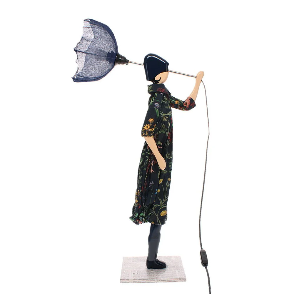 Each Outfit is individually hand-made from fabric, with the Body and base being formed from sustainable Wood. This truly stunning table lamp will add a unique style to any room.